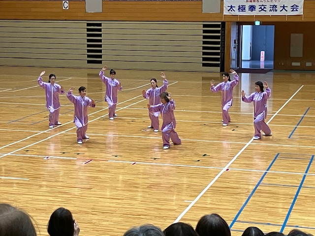 競技の部では、簡化24式の定式の順番を組み替えたり、フォーメーションを自由に変化させながら、皆さん見事にシンクロされていました。個人の能力はもちろんですが、練習も相当されてきたことが推察されます。